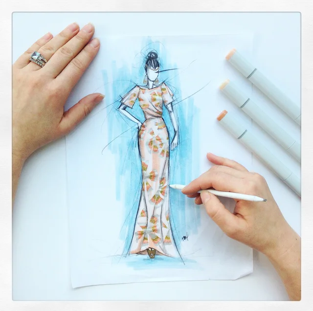 New York Fashion Week, Fall 2016 Ready-to-Wear is coming to a close. Here are some process shots of an illustration I did of a Monique Lhuillier gown from her show earlier in the week.